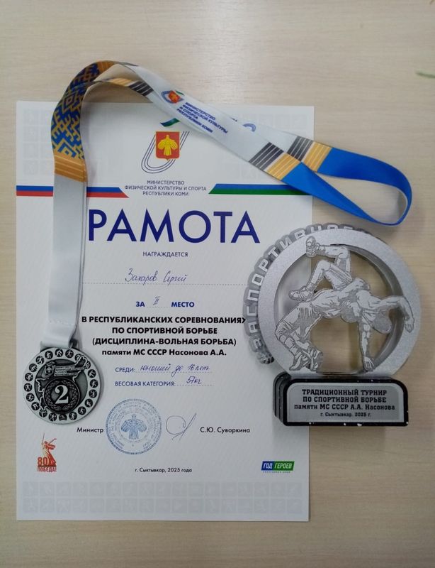 6 декабря состоялись Республиканские соревнования по спортивной борьбе памяти МС СССР Насонова А. А. на которых учащийся спортивного объединения "Вольная борьба усиленной подготовки" (педагог Муртазин А.А.) Захаров Сергей